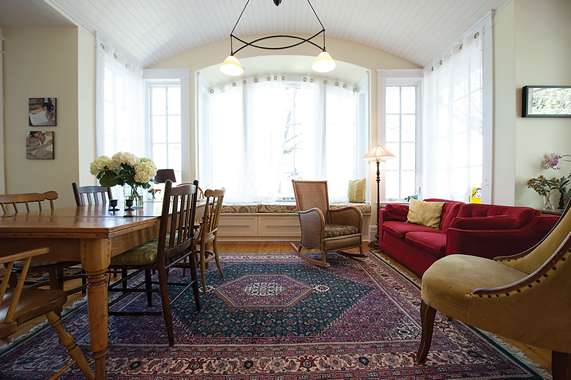 The architect worked closely with Lindsay Nicol of Crossford Construction to help the project evolve moment to moment, dealing with details and changes as they cropped up. With a busy entertaining schedule, creating open-concept rooms was crucial to the couple's lifestyle. On any given day they may have to accommodate a troupe of debating students, actors setting up for a play along with friends enjoying their buoyant hospitality.