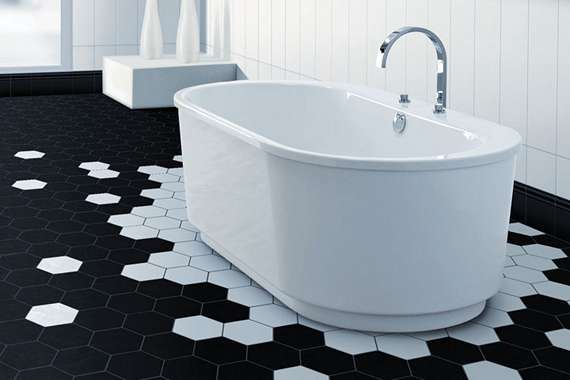 White and black for the bathroom is a classic and right on trend. This subtly textured, glazed enamel, hexagonal tile comes in four colours. It has an eco-friendly flavor with up to 47 per cent of recycled content. Find it at Céragrès.