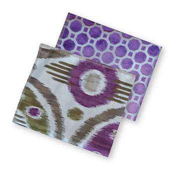 A classic ikat pattern with global inspirations and a traditional graphic print with an edge, in this year's Pantone colour of the year, radiant orchid. Both from Lûxe Home Interiors.