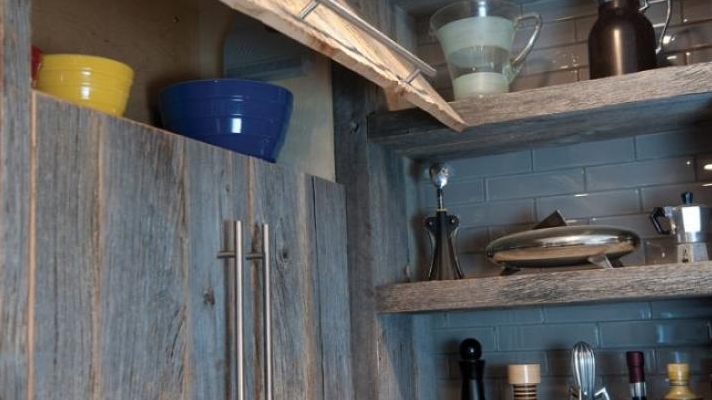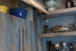 WHAT ARE THE AESTHETIC IMPROVEMENTS THAT YOU LOVE? The barnboard-finished cupboards are perfect. Also, I now get to enjoy cherished tools like my pepper grinder collection and the jug my grandmother brought over from Italy. While I do use these items all the time, I wanted open shelving so they could be both accessible and on display like works of art.