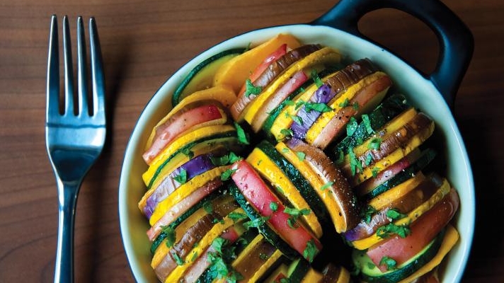 Named for the shallow French Provençal earthenware dish in which it’s usually prepared, a tian is a delicious way to showcase vegetables during the cold winter months. Using any vegetable combination you like – just be sure to slice everything thinly – you can make your tian in a large casserole dish or as individual tians in small oven-safe ramekins. This dish can be assembled and refrigerated a day or two ahead and baked just before serving.