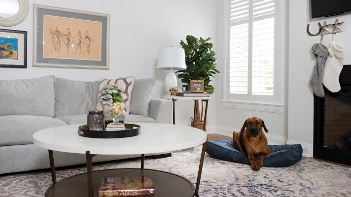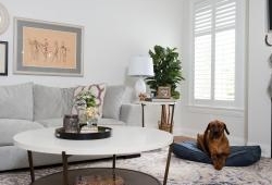 When the couple first toured the home in 2015, they were attracted to its many windows and open interior. But, it was the exterior qualities of the 2010 build that quickly sealed the deal—its proximity to the rink and a two-acre treed lot was perfect for their three adored dogs Remi, Tikka and Axel.