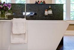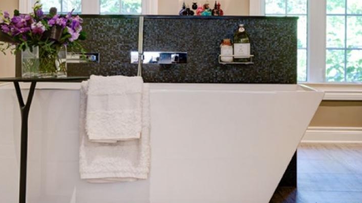 Recreate the luxurious look to suit your style and budget. A curved tub works better with traditional décor but a squared sink faucet will add a contemporary touch. Sumptuous bath products are a cost-effective indulgence and fluffy towels make you feel wrapped in luxury.