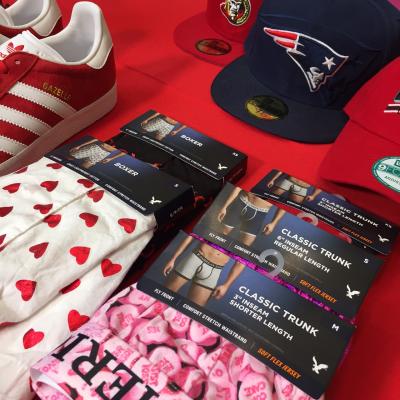 American Eagle carries comfy boxers in fun patterns with hearts, candy hearts, X’s and O’s and even a hot pink metallic that is sure to generate some spark with your lover.